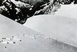 The abominable snowman became popular in modern culture. Sightings began to increase. Some individuals started going to the Himalayas to find the Yeti instead of to climb Everest. Eric Shipton and Dr. Michael Ward were surveying the Himalaya area to find possible routes up to the summit of Mt. Everest. They came across some intriguing prints.