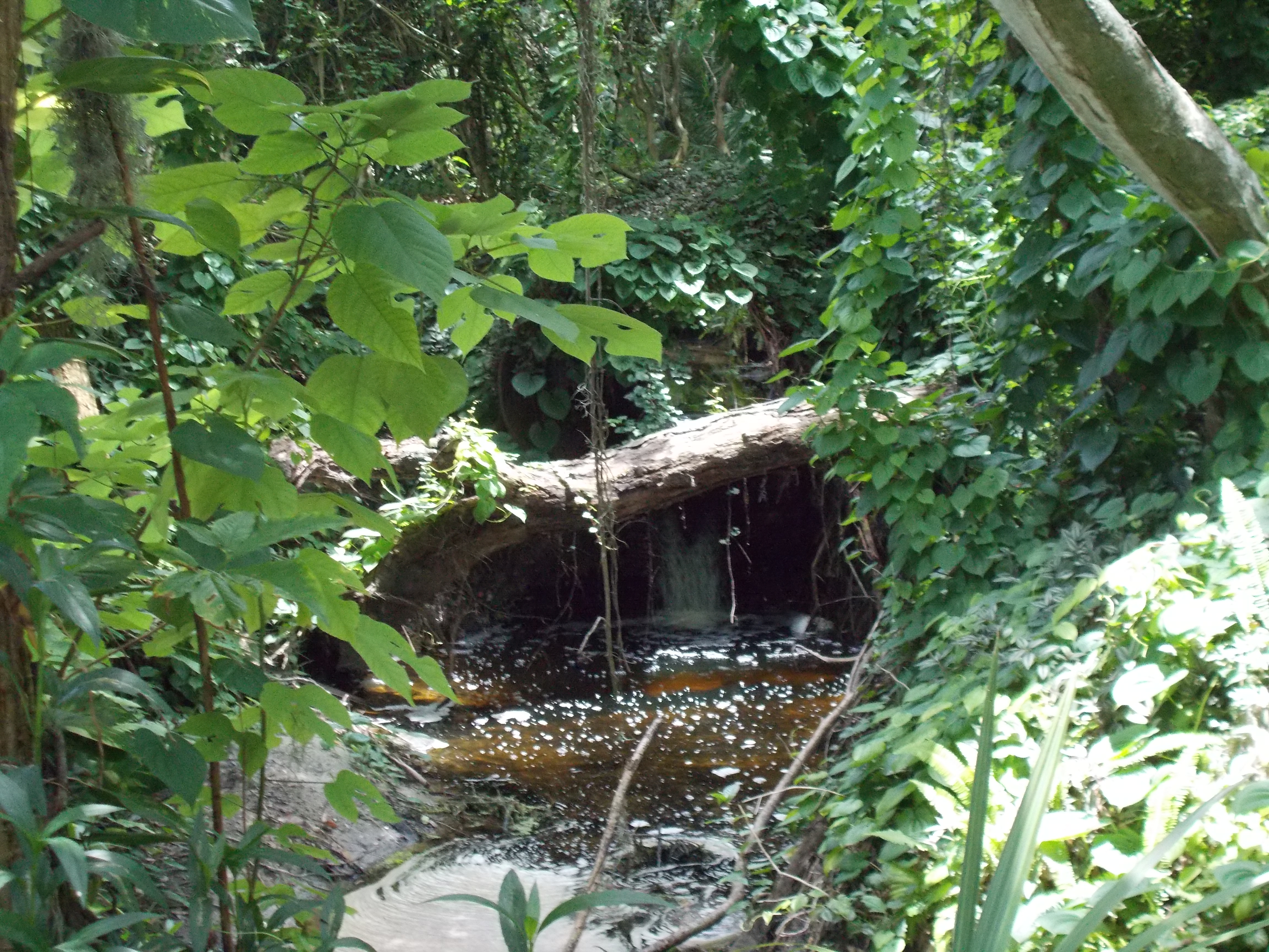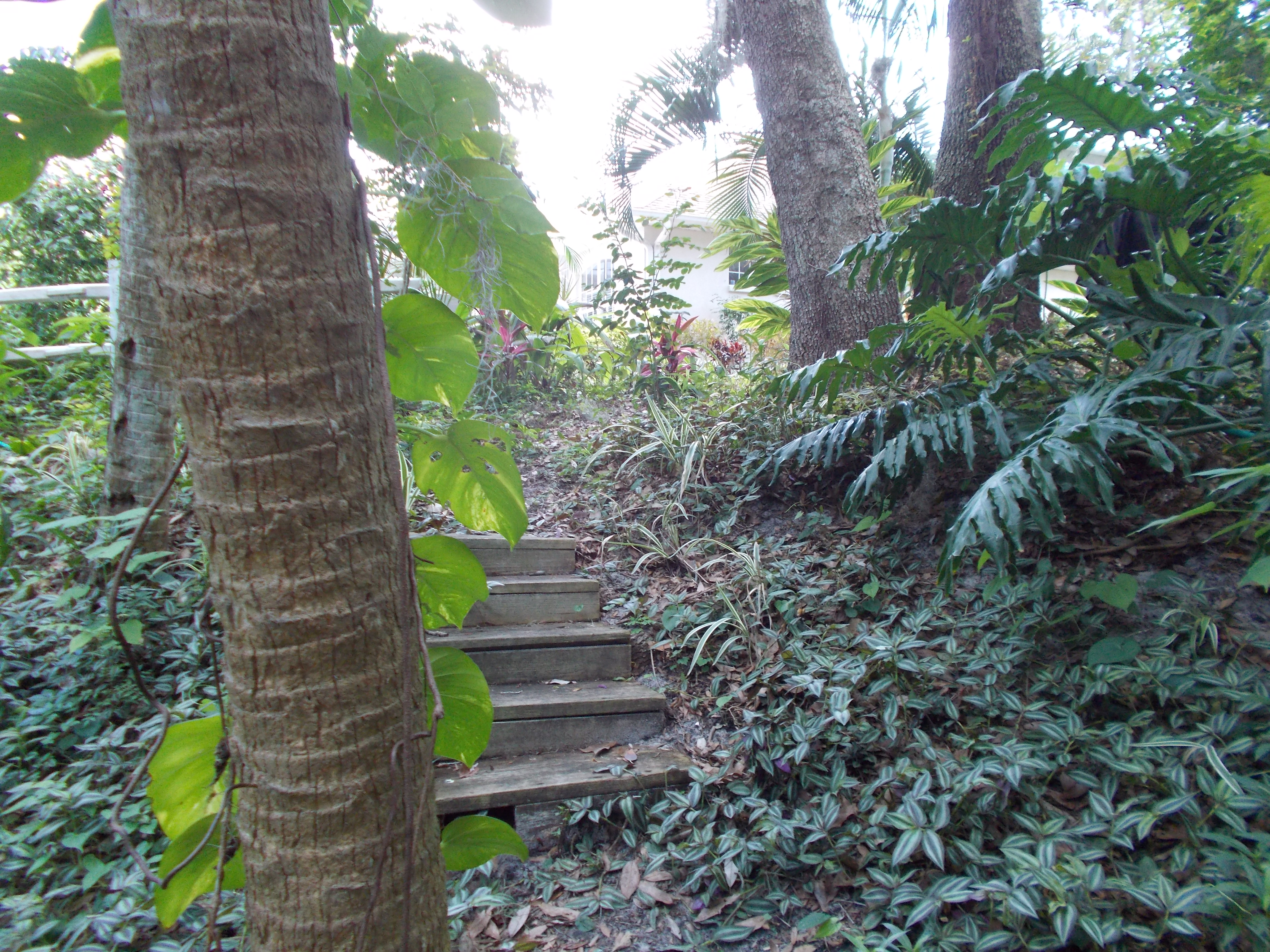 During the second visit to the house we were eventually going to buy, I started wandering to the furthest ends of the jungle-like yard. Hearing the sound of water ahead of me, I pushed through some thick foliage and came upon something unexpected. Wooden stairs that descended toward the water. Stepping carefully on the wet, mossy steps, I made my way down to a landing overlooking a part of the creek.