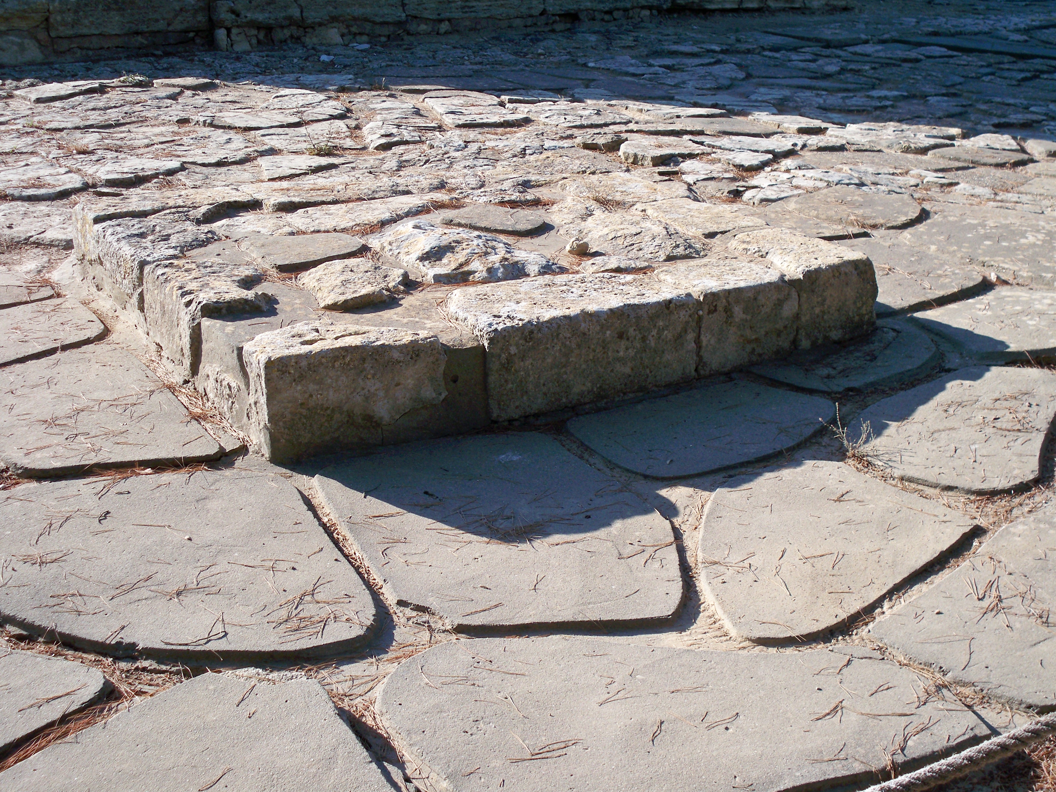 I was fortunate to be able to visit the island of Crete, and even more fortunate to visit Knossos, which is considered to be one of the oldest cities is human history. For people like me who enjoy old, dead ruined things, this is a ‘must see’ location. Not only is it old (like I would need any other reasons), it is also the capital and center of the Minoan culture and the source of the mythological story of King Minos, Theseus, and the Minotaur. In current times, the Minoans are frequently portrayed as a peaceful, gentle, non-militaristic people who ruled over a sort of ‘idealistic paradise.’ If only it were so. But as you walk the site and listen to the guides explain about the culture, you come across a plain looking raised area of brick.