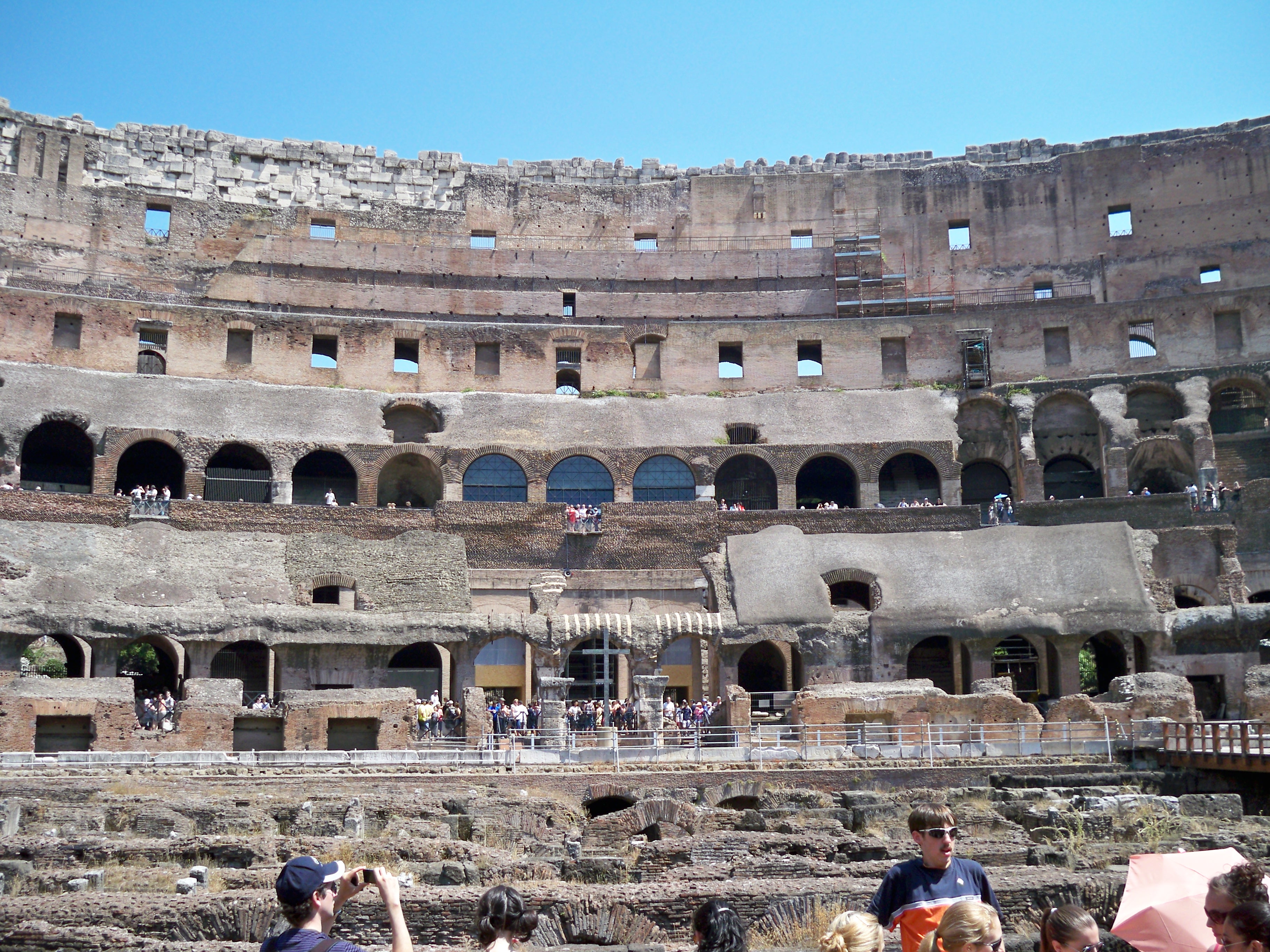 2010-07-04 01.14.32Participating in softball playoffs this week (in which our team was eventually crushed) has got me thinking about various venues of competition. The Coliseum is probably one of the most famous arenas of battle. I was fortunate enough to see it first hand. It’s big. It’s impressive. It has graffiti carved into its walls and columns.  Still, you can stand inside of it and imagine gladiators battling wild animals (or you could just watch the movie).